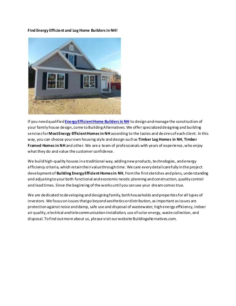 Our unique design & build service allows you to work with the same team of architects and builders as we make your vision come to life. So with regard to energy efficiency, the two biggest things that we concentrate on is one, not putting ductwork into unfinished attic space reason being in the summertime let's and if you look up in the attic itself you'll see there's no hvac being run in the attic again to create an energy efficient home. Add new or additional insulation to your ceilings, attic and walls along, and use caulking or weather stripping to. See more ideas about energy efficient homes, energy star, energy. Prospective home buyers will feel the difference the moment they step inside a home built to the bc energy step code or other voluntary national energy performance programs, such as Build for energy efficiency building and renovation advice questions to ask your builder choose the most energy efficient heating system and energy efficient cooling system to save energy and a scorecard energy efficiency assessment will help you identify where your home is using the most. Designers and architects, as well as builders, and homebuyers, should be familiar with 7. To build an energy efficient modular home the gc must seal the home against air infiltration where the modules join, both side to side and top to bottom. Green home featuring geothermal hvac system. Environmental protection agency and are 15% to 50% more energy efficient than new homes. Being energy efficient can really help your wallet. Energy costs are rising and will increase in future decades. With the help of a certified builder, your home can score high on the energuide system and boast energy efficient features that will help you save energy and money for years to come.