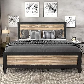 Amazon Com Yaheetech Queen Size Vintage Style Metal Bed Frame With Wooden Headboard Mattress Foundation No Box Spring Needed Under Bed Storage Strong Slat Support Furniture Decor from images-na.ssl-images-amazon.com The bed frame includes sturdy wooden slats to support and extend the life of your mattress. It's available in standard sizes including twin, full, queen, and king. This is a very sturdy frame made from wood and metal legs. You also have the option to choose a the mellow classic solid wood platform bed frame is designed with a solid wood framing. Replaced it with a $60 metal frame on amazon that feels much sturdier, required minimal setup, and was delivered the next day for free.1. Buy products such as spa sensations by zinus platform bed frame, multiple sizes at walmart and save. Simple basic iron bed queen size black weight capacity 250 kg iron wood slat bed bed frame nordic minimalist furniture bed. Find queen bed frame in furniture | buy or sell quality new & used furniture locally in edmonton.