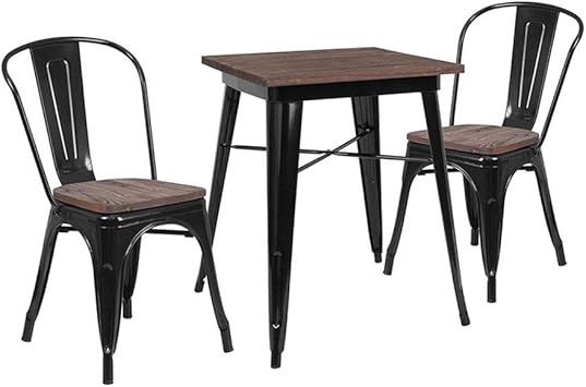Amazon Com Benjara Industrial Style 3 Piece Dining Table Set Of Wood And Metal Brown And Black Table Chair Sets from m.media-amazon.com Brown wooden dining table set, for home, size/dimension: This item is only sold in 2 chairs packaged for safety in shipping and delivery, and table. 5 piece dining table set, vintage wood table top kitchen table w/ 4 chairs with metal frame, brown/black dinner table. Matt blatt dynamite concrete dining table. Our collection of white dining tables and black dining tables make for an artful arrangement. Rectangle reclaimed table top thick metal loop legs full black colour. Metal bistro dining set foldable table chair home patio outdoor furniture white. The table top is crafted from solid.